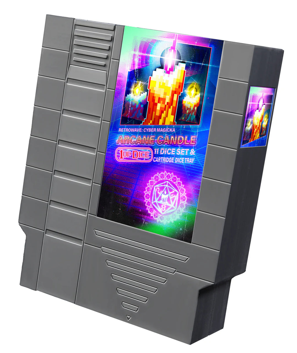 In a neon-soaked future, somewhere between arcade halls and synthwave dimensions, a candle burns whose flame is made not of wax, but of pure 8-bit magic. This Arcane Candle is the symbol of the Retrowave Cybermagicka Series – a pixelated spark of power that replaces the highest number on any Dice and imbues your rolls with a touch of retro magic.