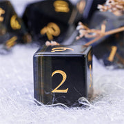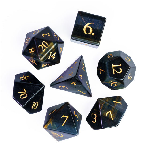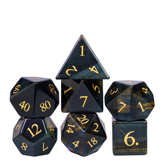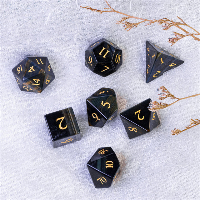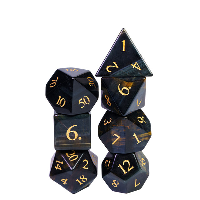 The 67 g heavy Dice are hand-cut as well as engraved with gold-colored numbers.