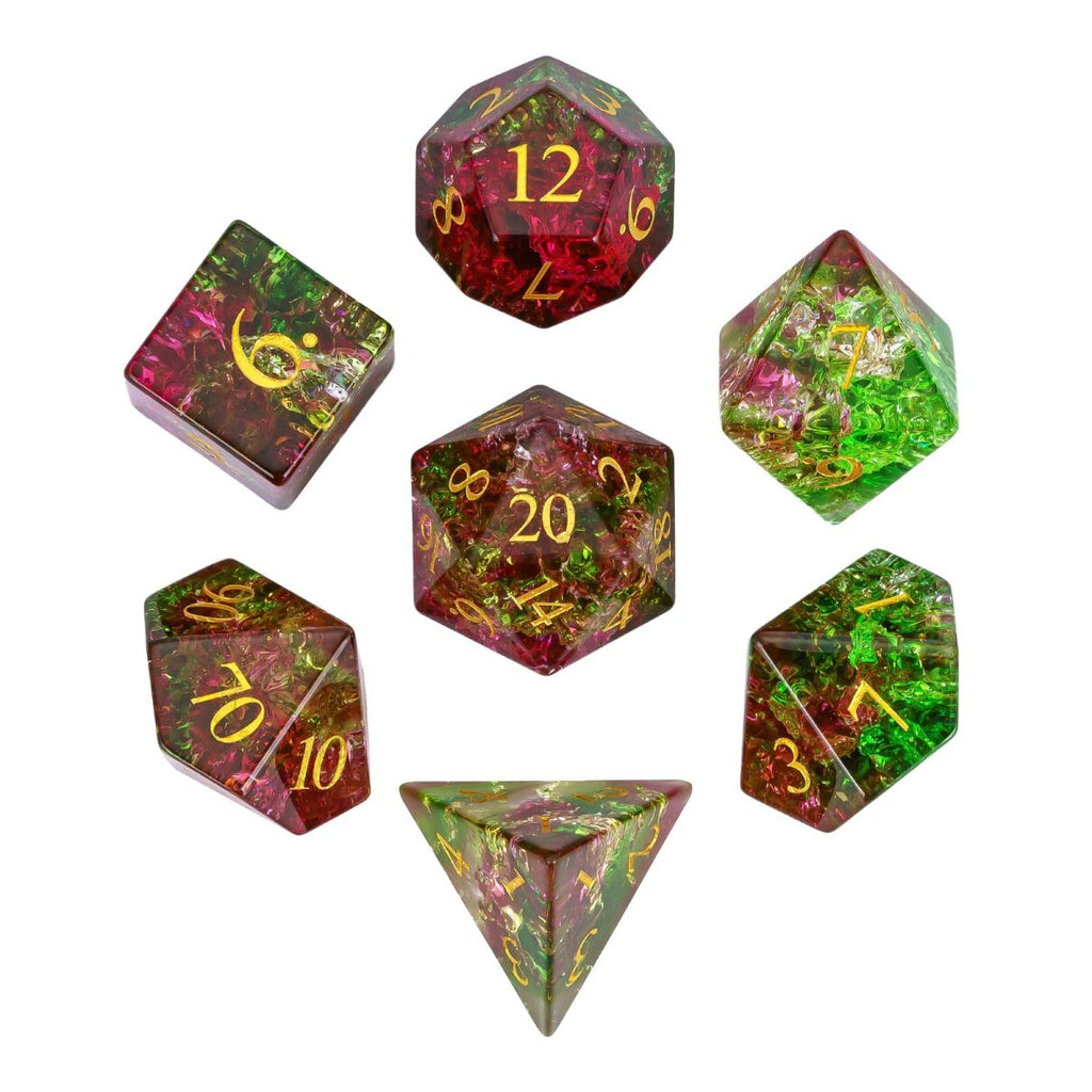 Set of 7 glass dice: D4, D6, D8, D10, D10.0, D12, D20