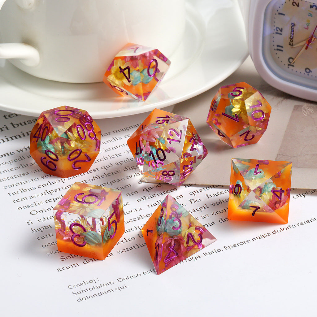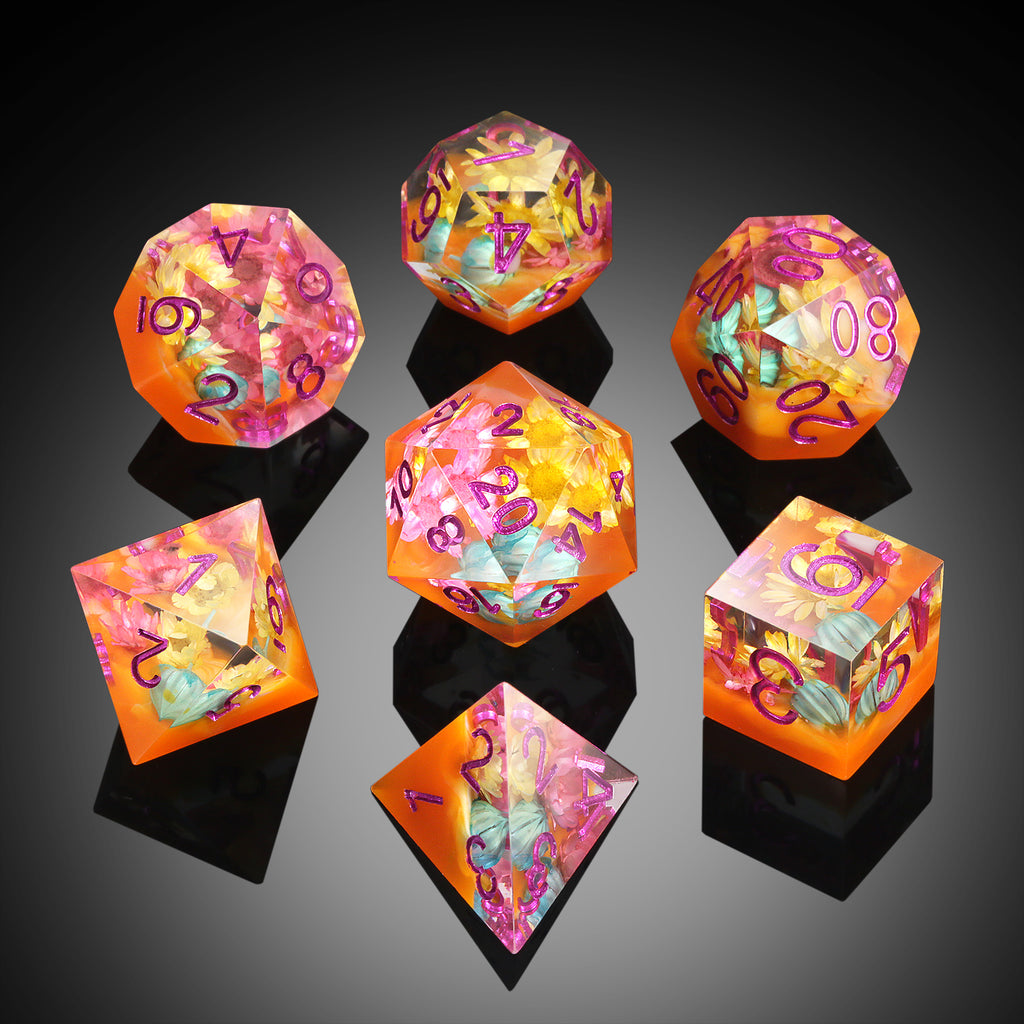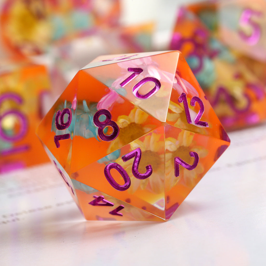 Discover the Eternal Spring Dice Set: Each Dice is a handcrafted work of art, filled with the beauty of real flowers and leaves. Embedded in crystal-clear resin, these treasures of nature bring an unparalleled aesthetic to your gaming table.