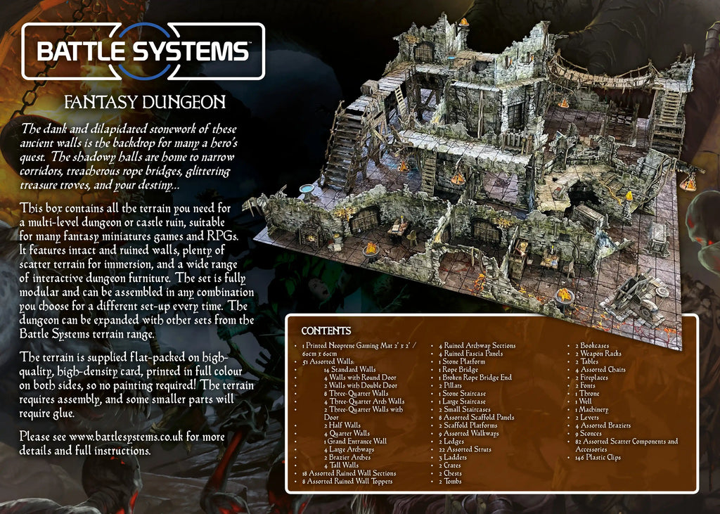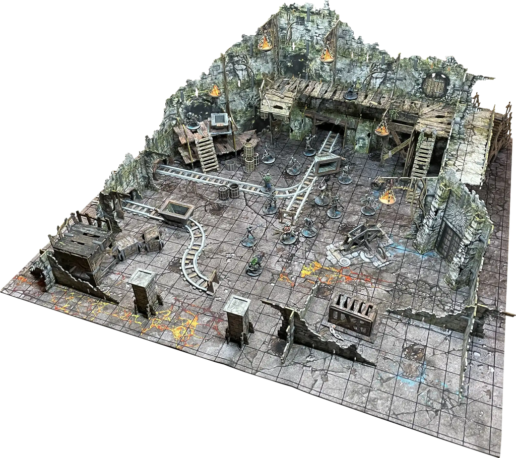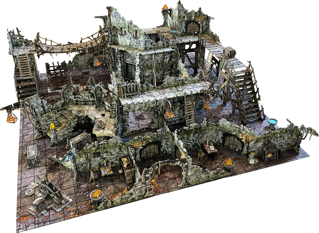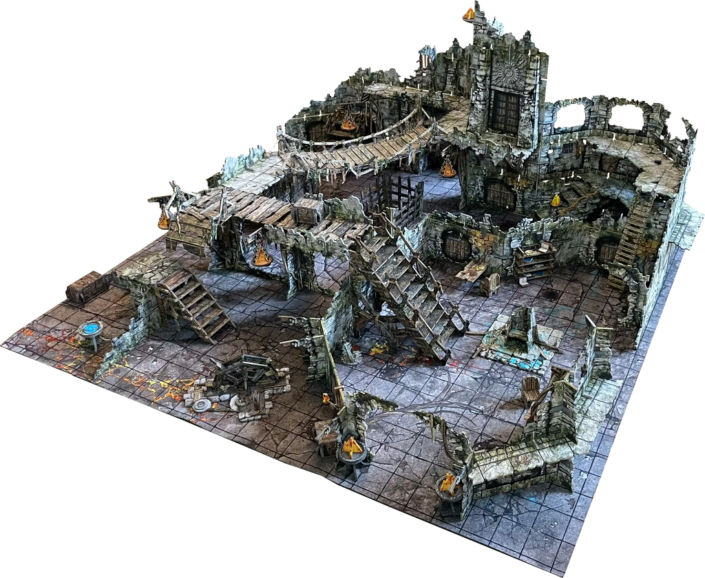 Large set for multi-level dungeons with extensive walls, platforms, bridges, and lots of scatter terrain.