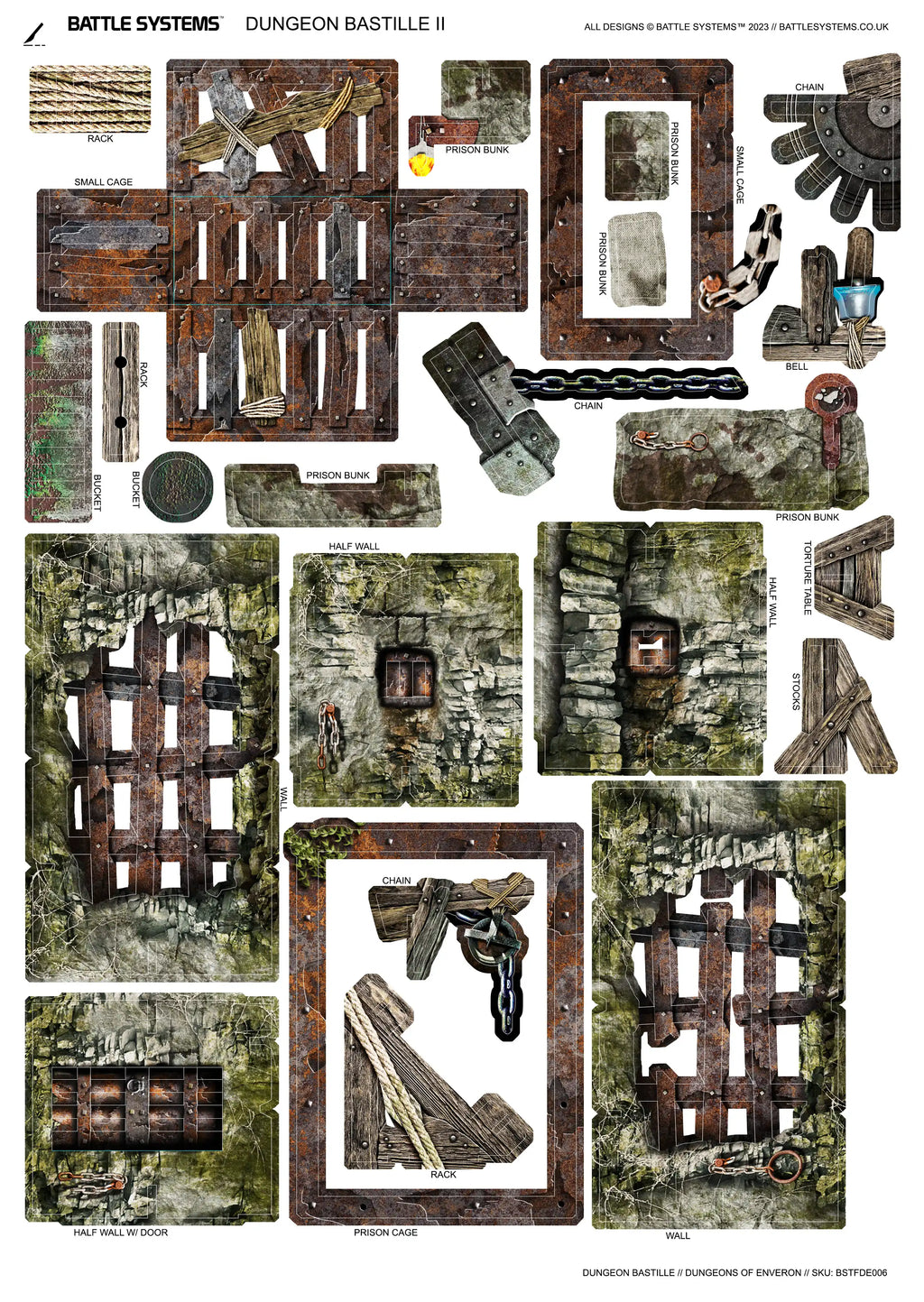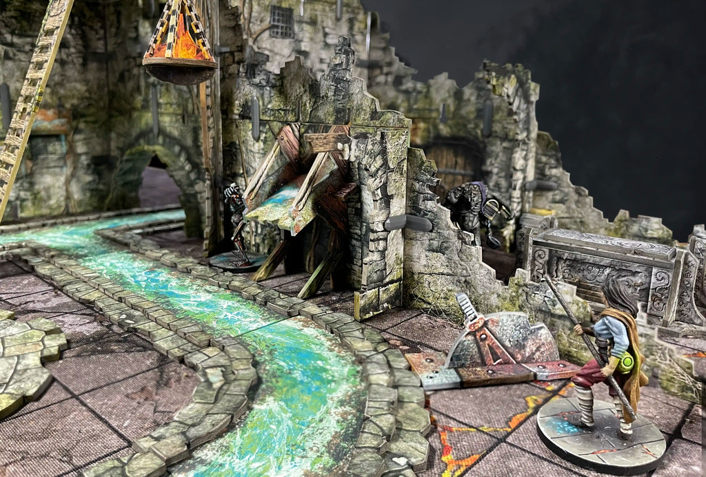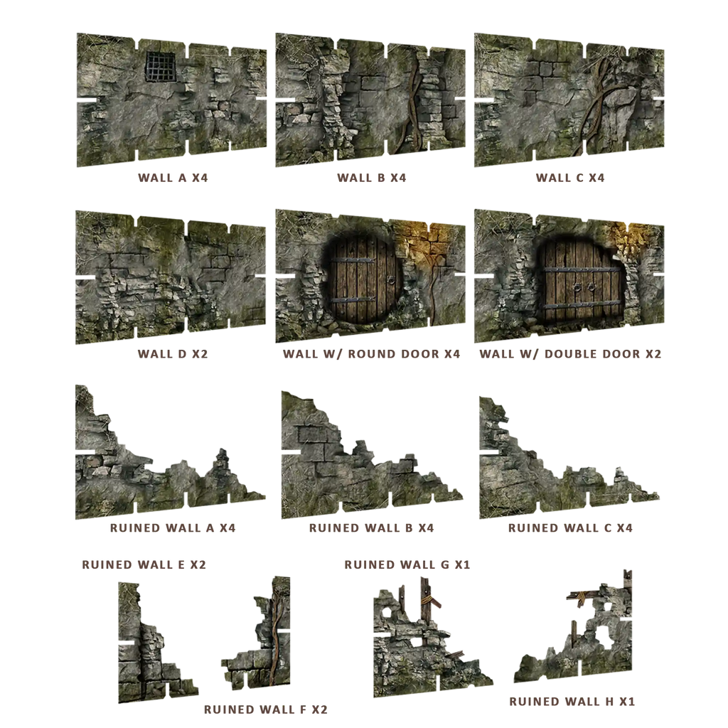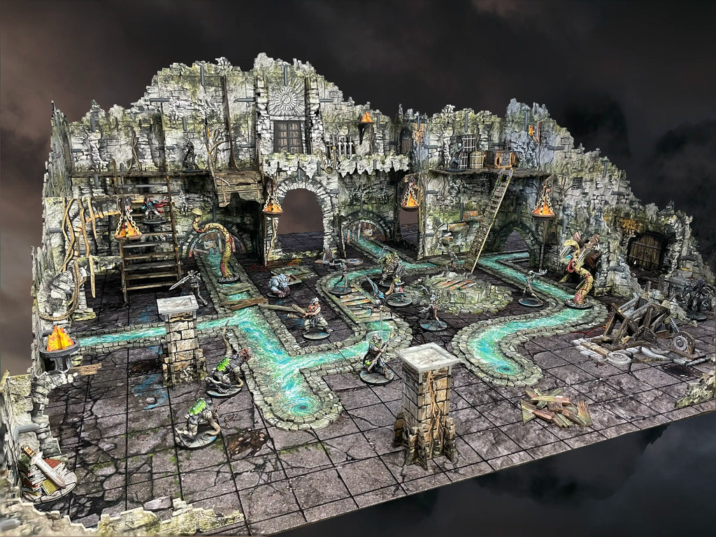 Large set for multi-level dungeons with extensive walls, platforms, bridges, and lots of scatter terrain.