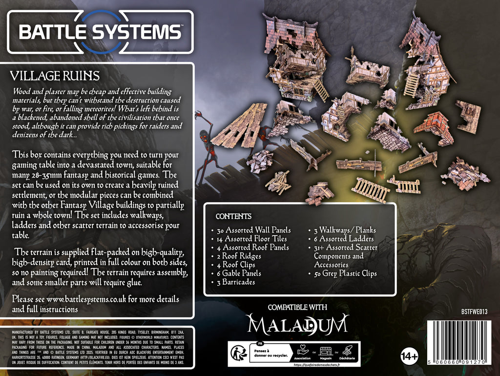 Expand your tabletop with the modular Fantasy Wargames Terrain sets from Battle Systems and create vibrant, richly detailed gaming environments for battles and adventures. From idyllic villages and fortified cities to ruined ruins, this range offers everything for immersive scenarios.