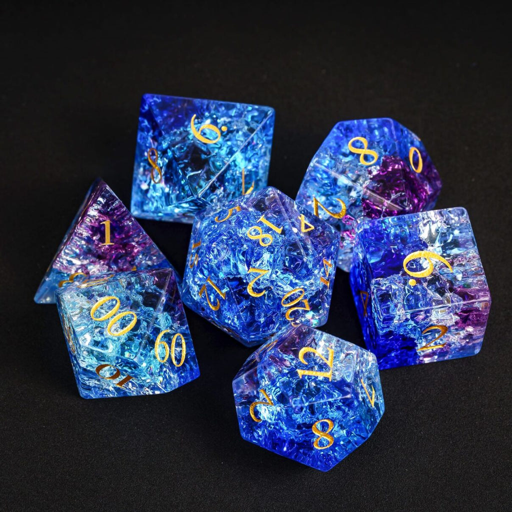 Each Dice is a frozen fragment of this heart, captured in sparkling glass. The shattered effect resembles frozen veins glowing in the depths – as if life still pulses beneath the ice.