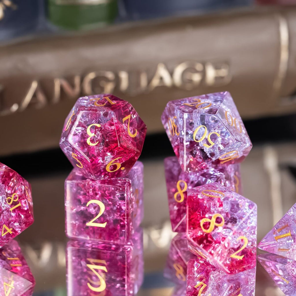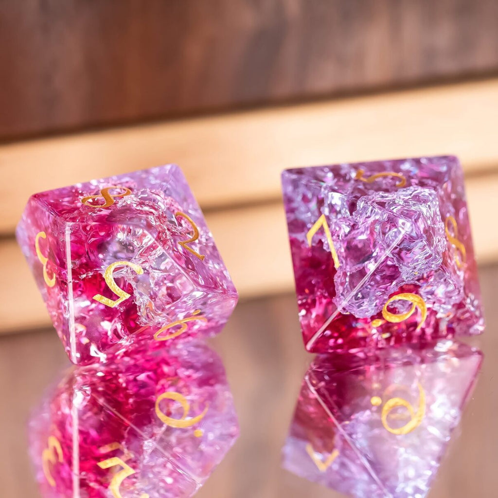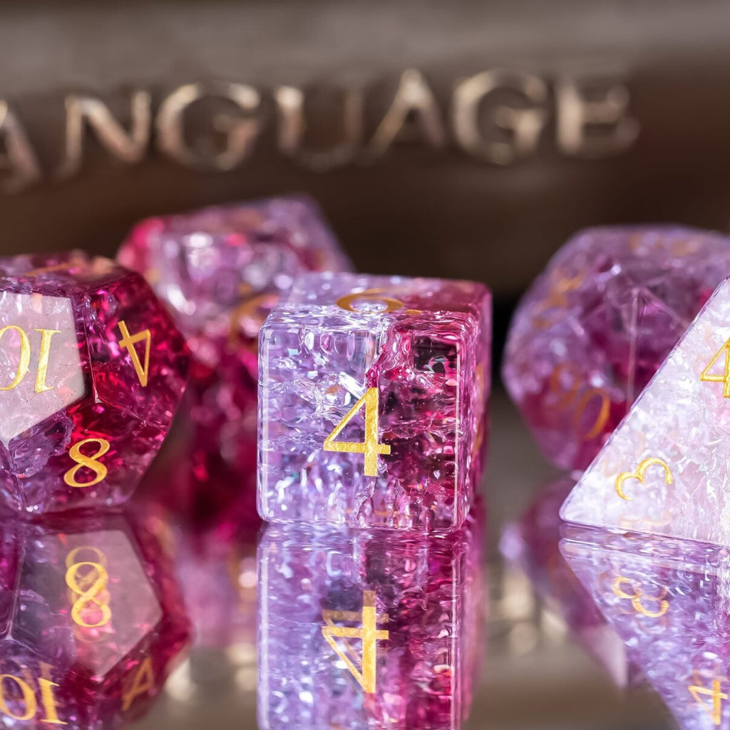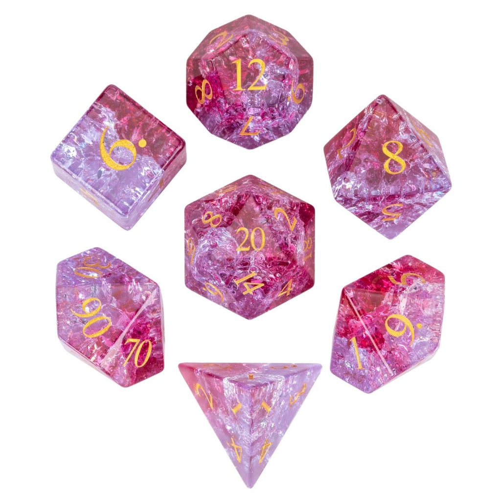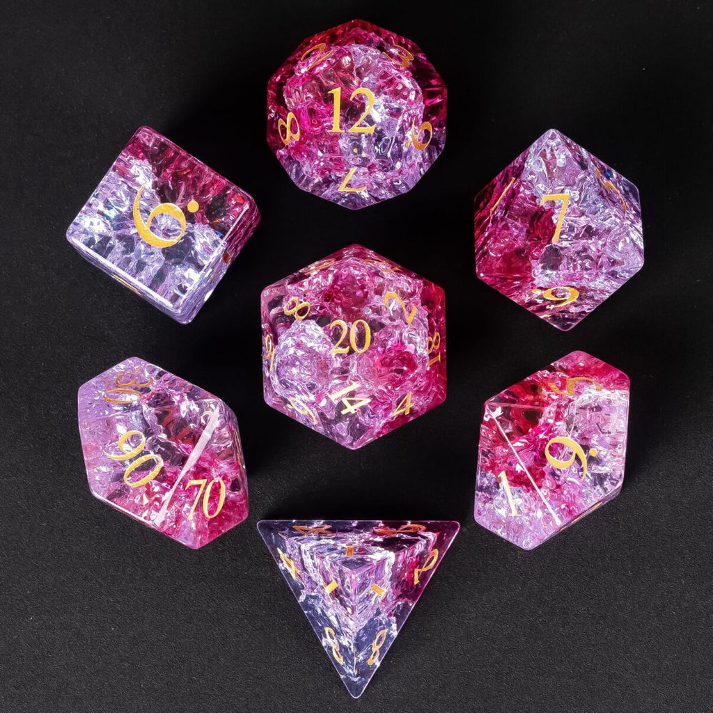 Set of 7 Glass Dice: D4, D6, D8, D10, D10.0, D12, D20