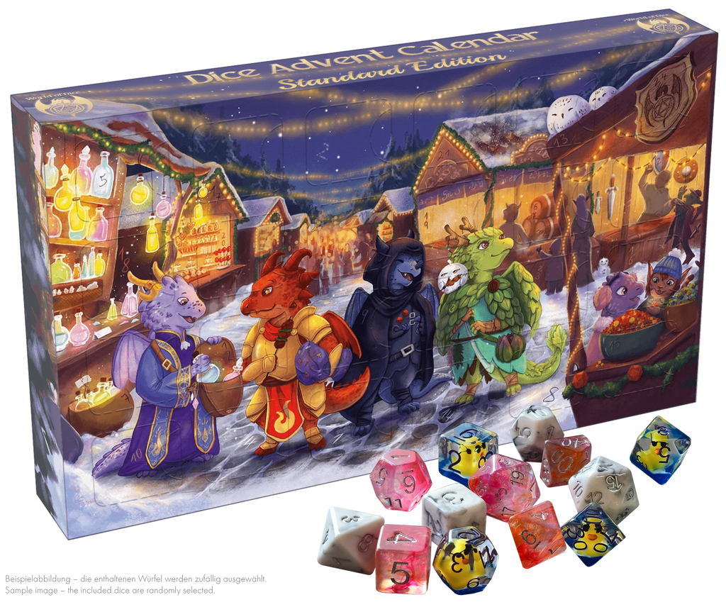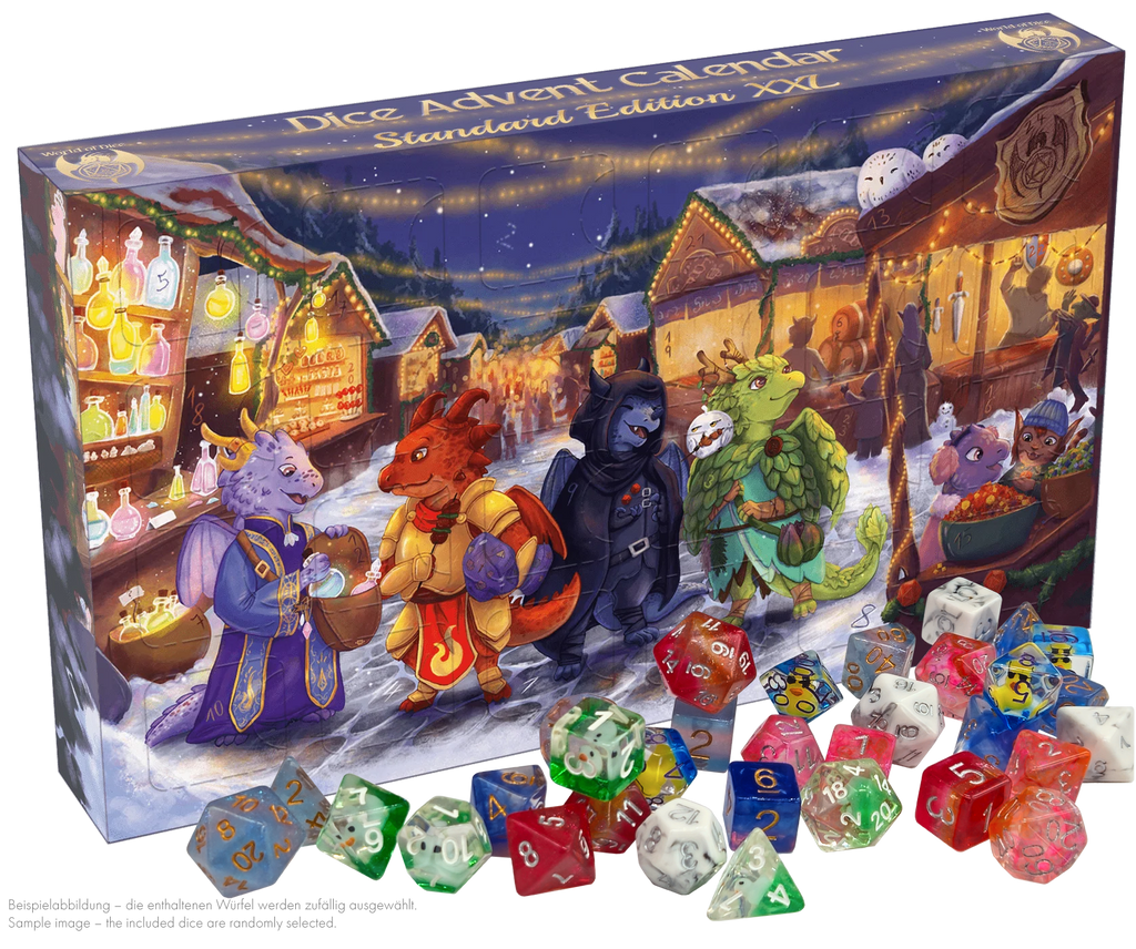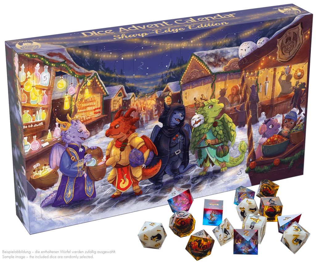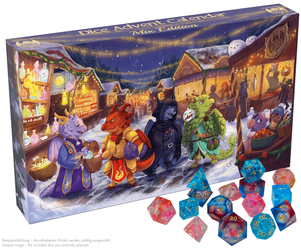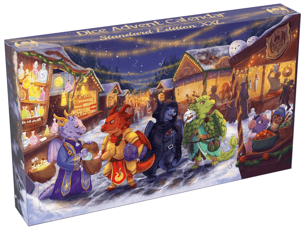 Behind each of the 24 doors awaits a unique dice experience that will make your collector's heart beat faster. Look forward to an exciting mix of brand-new and previously unreleased dice sets and popular treasures from our World of Dice range.