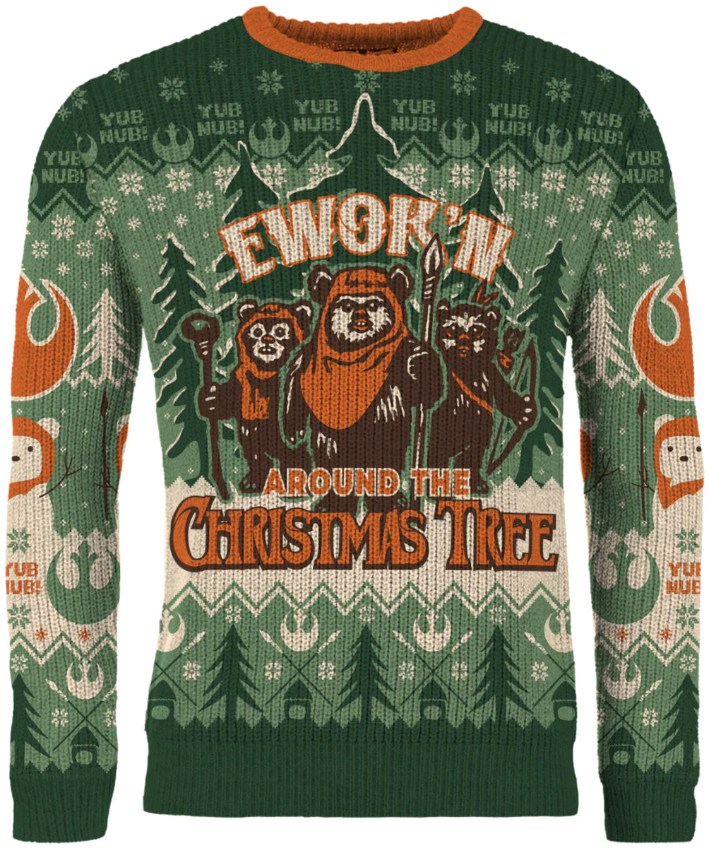 Gather, brave members of the Rebel Alliance – because with this officially licensed Star Wars: Ewok Ugly Christmas Sweater, you celebrate the holidays like true Endor legends! The fluffy warriors of the forests have gathered in full holiday attire to welcome you with a cheerful “Ewok’n Around the Christmas Tree”.