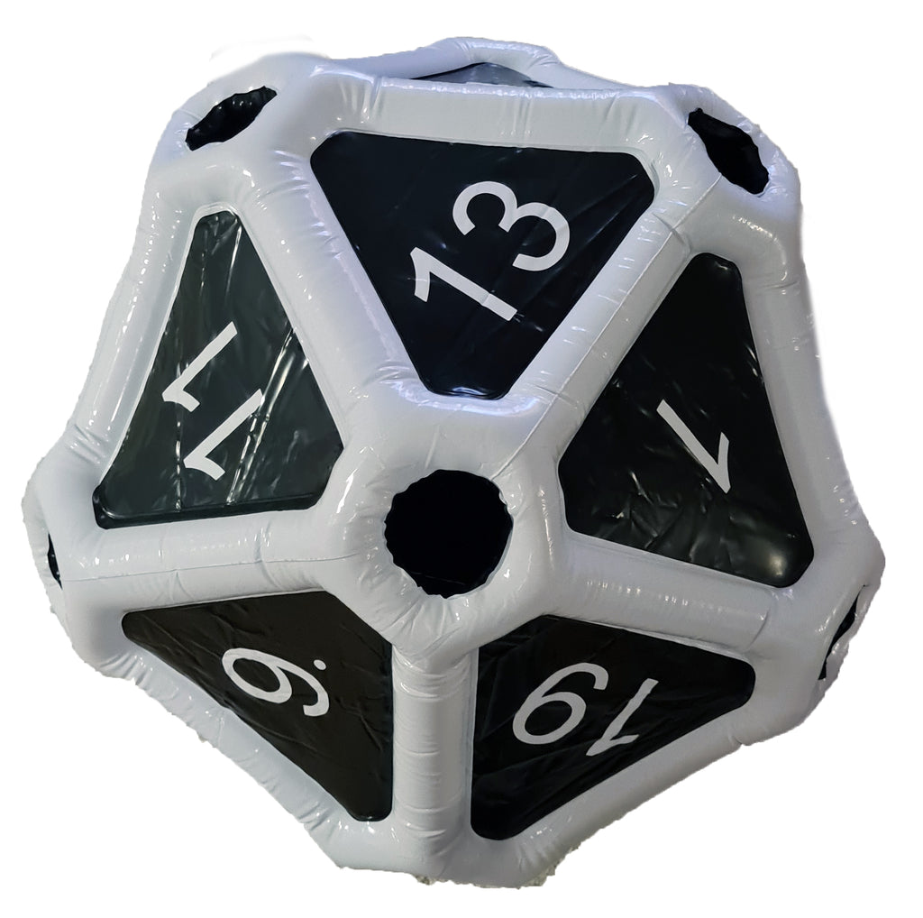 GIGANTIC W20 - Finally a Dice worthy of a true hero! With a diameter of 60 cm, the inflatable Dice is an absolute highlight. Due to its special design, the Dice inflates in seconds and retains its shape for weeks, thanks to the special valve.