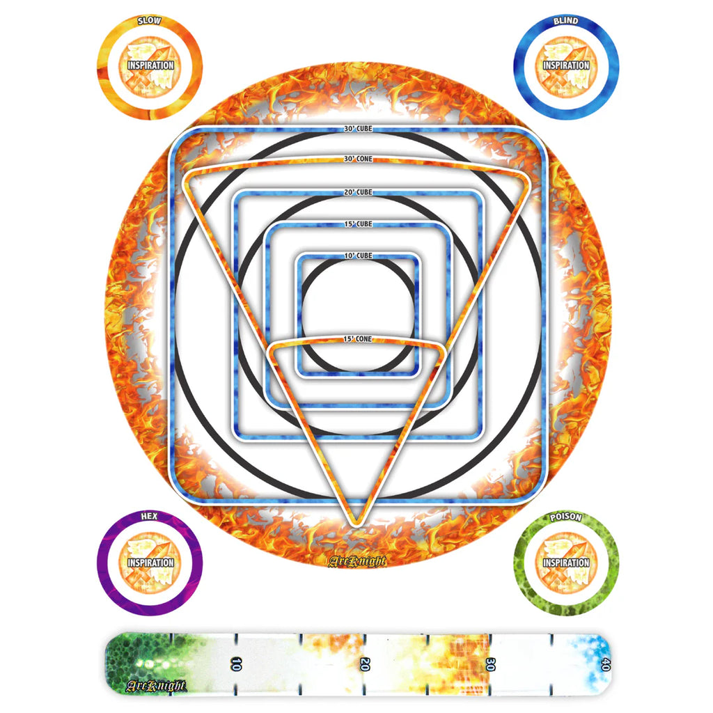 Präzise, stabil und sofort einsatzbereit – das AOE Damage Template Set ist das perfekte Werkzeug, um Zaubereffekte, Flächenangriffe und Zustände direkt auf dem Spieltisch darzustellen.