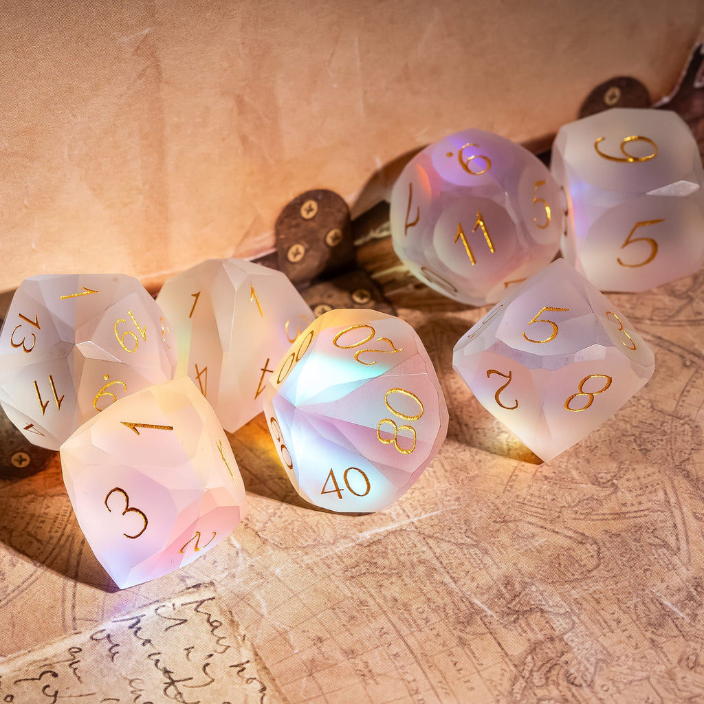 Wenn die Götter über die Geschicke der Welten wachen, greifen sie nicht zu gewöhnlichen Werkzeugen. Aetherglass gilt der Legende nach als jenes Material, aus dem die Würfel gefertigt sind, mit denen die Hüter der Sphären Entscheidungen von kosmischer Tragweite treffen – still, würdevoll und von vollkommener Klarheit.