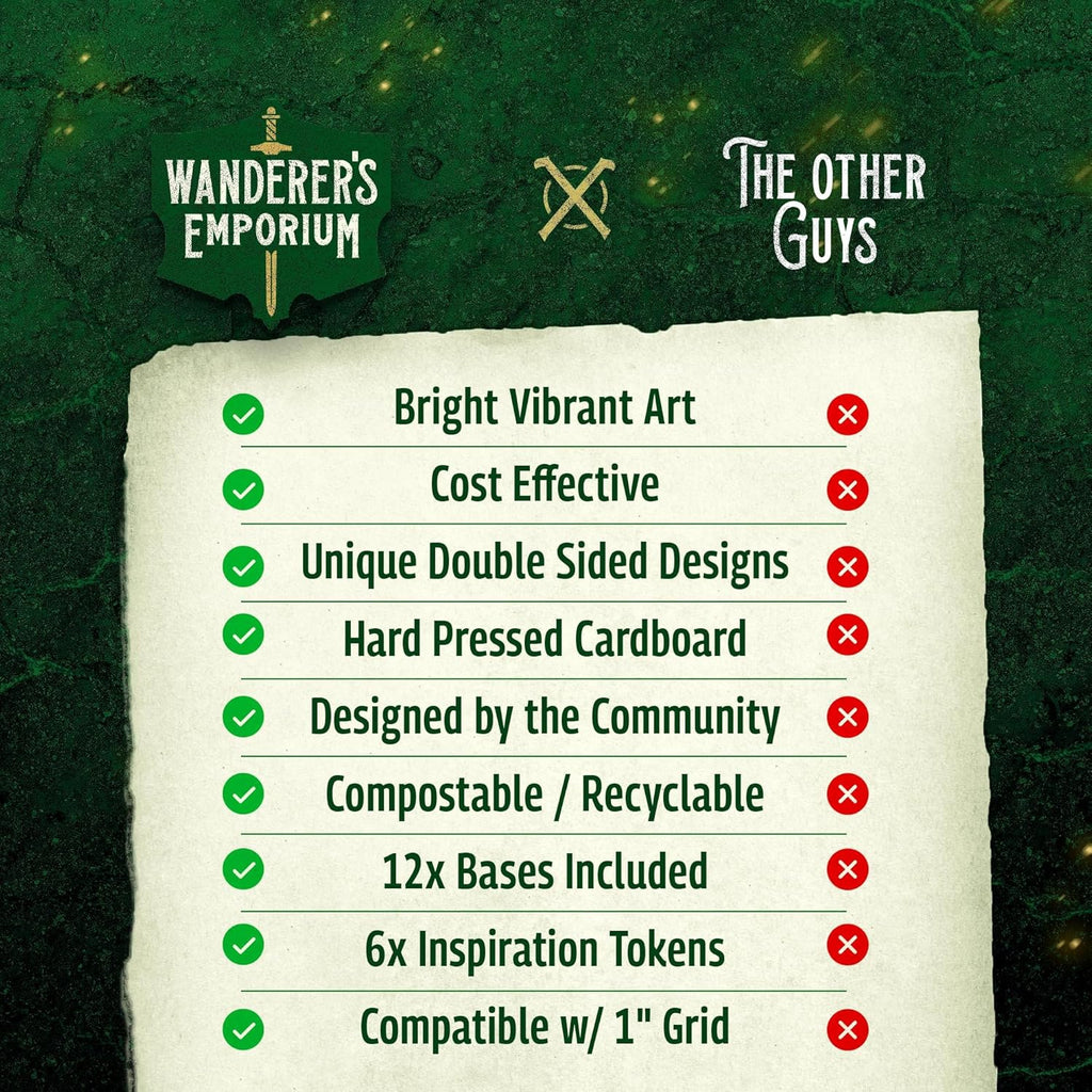 Die Minis sind im Standardmaßstab von 28–32 mm gefertigt und passen perfekt zu jedem 1" Grid-System sowie bereits vorhandenen 3D-Minis. Damit sind sie kompatibel mit nahezu jedem D&D- oder Pen-&-Paper-Abenteuer.