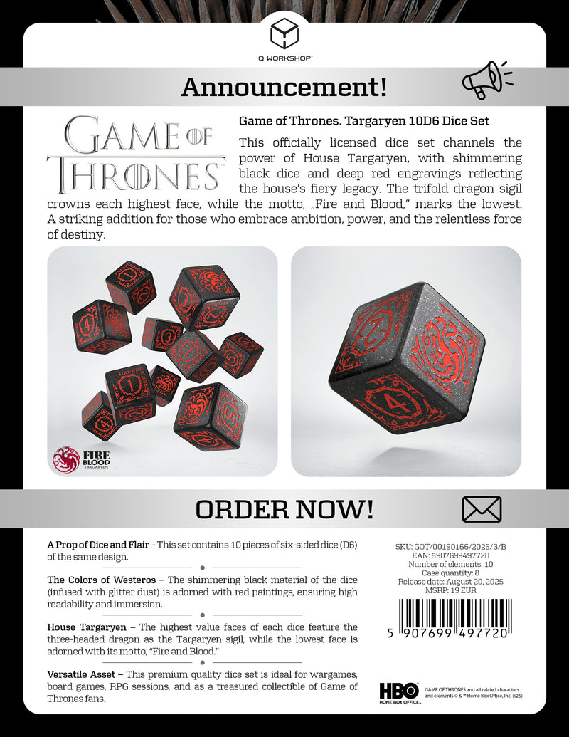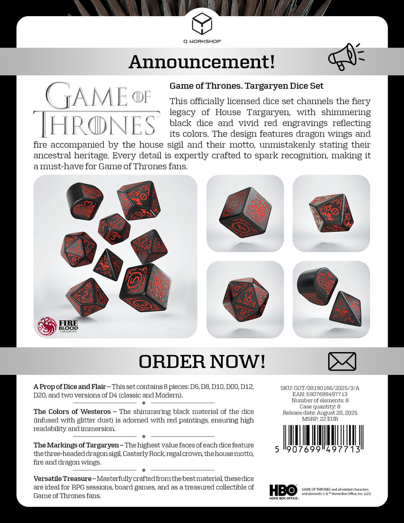 Game of Thrones Würfelsets – Offiziell lizenziert von Q WORKSHOP