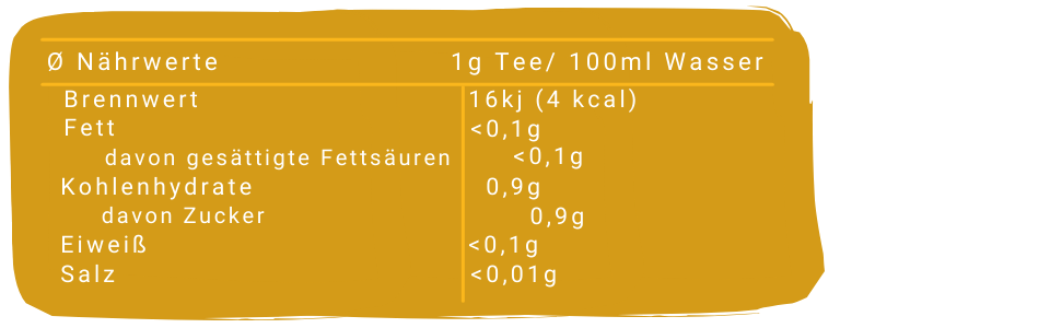 Für eine Tasse (ca. 250 ml) 1–2 Teelöffel in heißem Wasser (100 °C) ca. 10 Minuten ziehen lassen. Für einen Eistee: doppelte Menge aufbrühen, abkühlen lassen und mit Eis servieren.