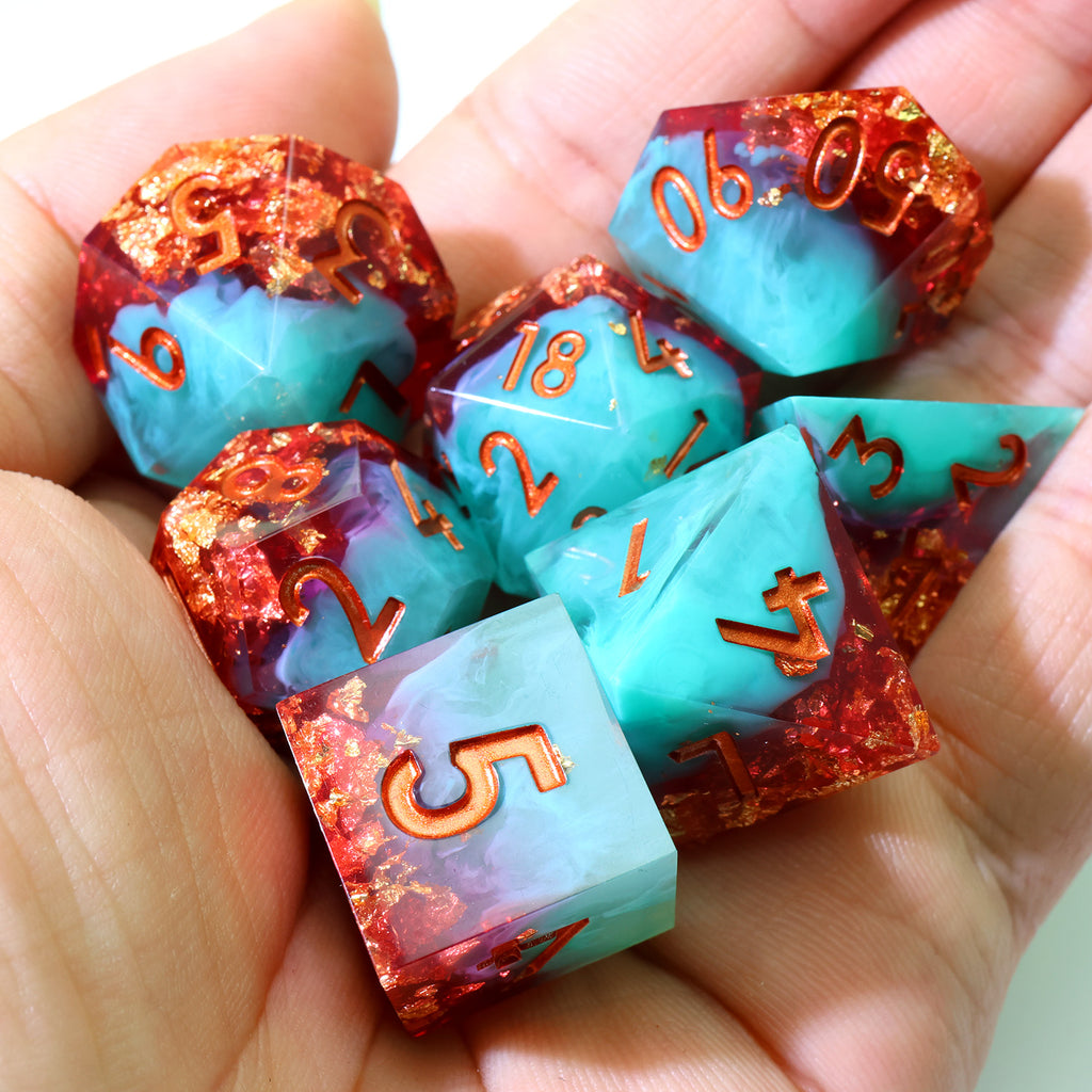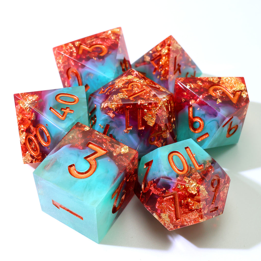 Set aus 7 Sharp Edge Würfeln: D4, D6, D8, D10, D%, D12, D20
