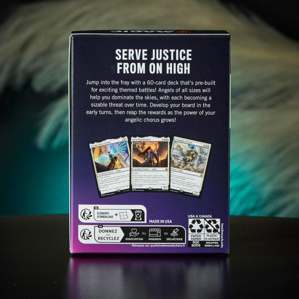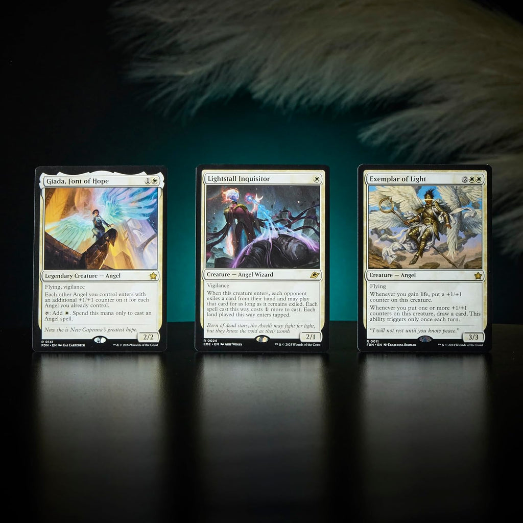 Die beiden Decks greifen die Atmosphäre von Lorwyns Finsternis auf und bieten thematisch abgestimmte Karten mit starkem Wiedererkennungswert. Während die Engel für Kontrolle, Schutz und mächtige Finisher stehen, setzen die Piraten auf Tempo, Tricks und gezielte Störungen des Gegners.