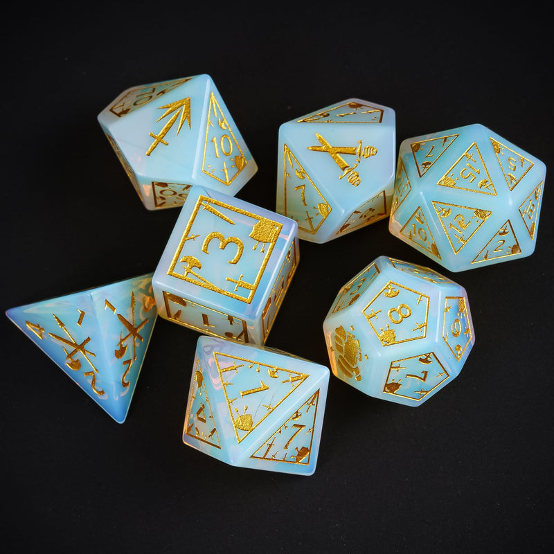 Entfessle die Macht einer vergessenen Waffenkammer, in der Magie und Stahl zu einer unaufhaltsamen Kraft verschmelzen. Das Opalite Arcane Armory Würfelset vereint die geheimnisvolle Ausstrahlung des Opals mit der Symbolik legendärer Waffen – perfekt für Helden, die ihr Schicksal mit Klinge und Zauber besiegeln.
