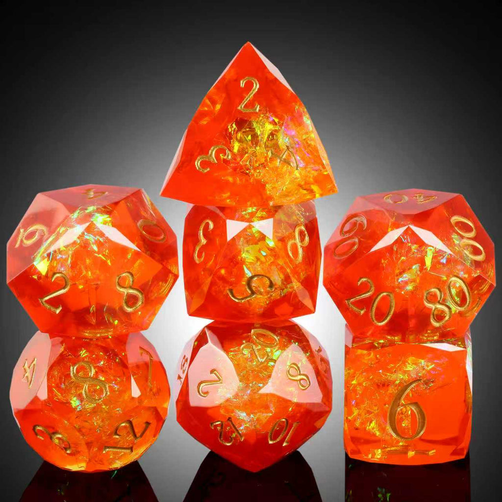 Set: 7 Sharp Edge Würfel – D4, D6, D8, D10, D%, D12, D20