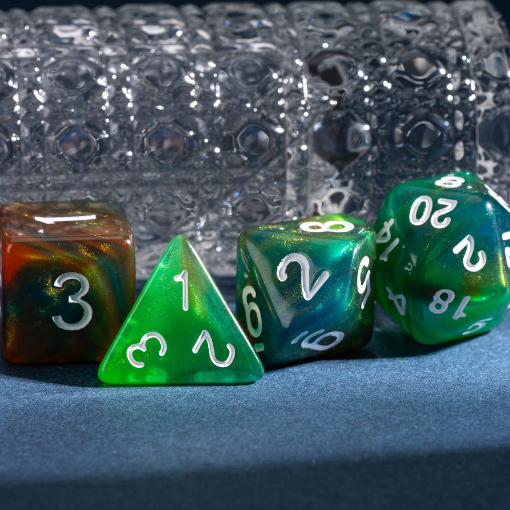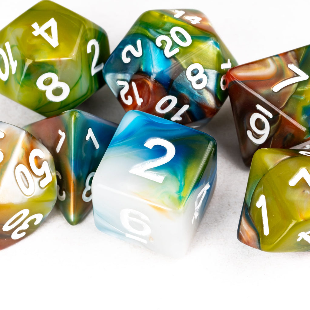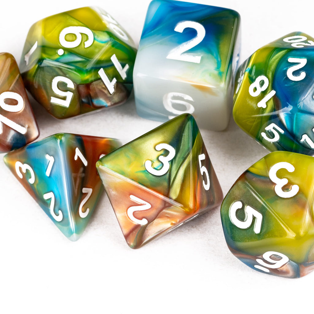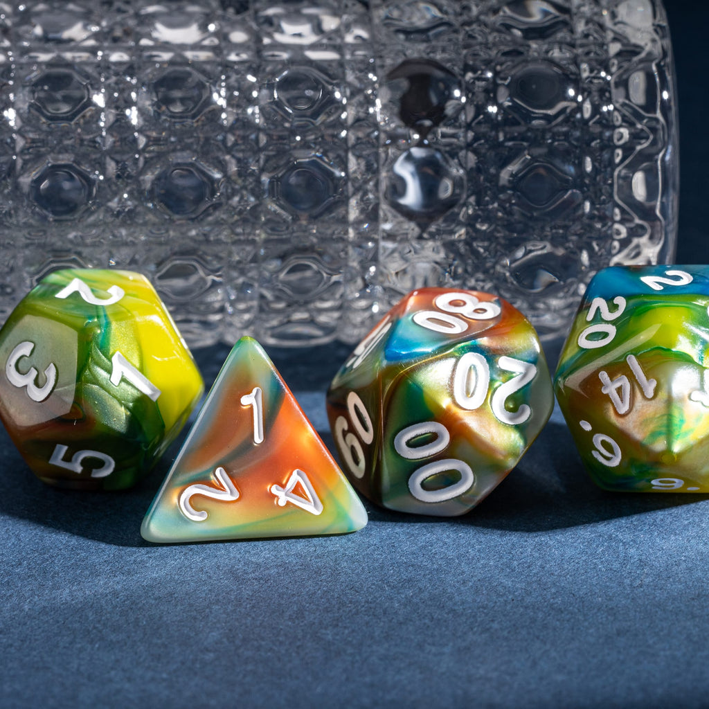 Die Swirlpop-Serie bringt lebendige Farbverläufe auf den Spieltisch. Jede Würfelserie entsteht aus mehreren ineinander fließenden Farben, die sich zu einzigartigen Wirbeln verbinden. Kein Set gleicht dem anderen, jeder Wurf zeigt neue Kontraste, neue Übergänge, neue Details.