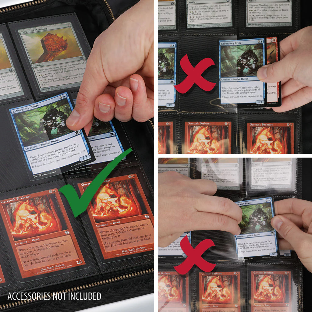 Die Seiten bestehen aus archivierungssicheren, säurefreien und PVC-freien Materialien, damit deine Karten langfristig vor Beschädigungen, Verfärbungen und Abnutzung geschützt bleiben.