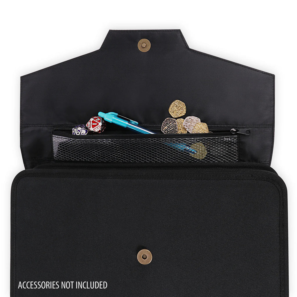 Ein integriertes Zubehörfach bietet zusätzlichen Platz für kleine Spielutensilien wie Würfel, Token, Stifte oder andere wichtige TCG-Accessoires - ideal für Turniere oder Spieleabende.