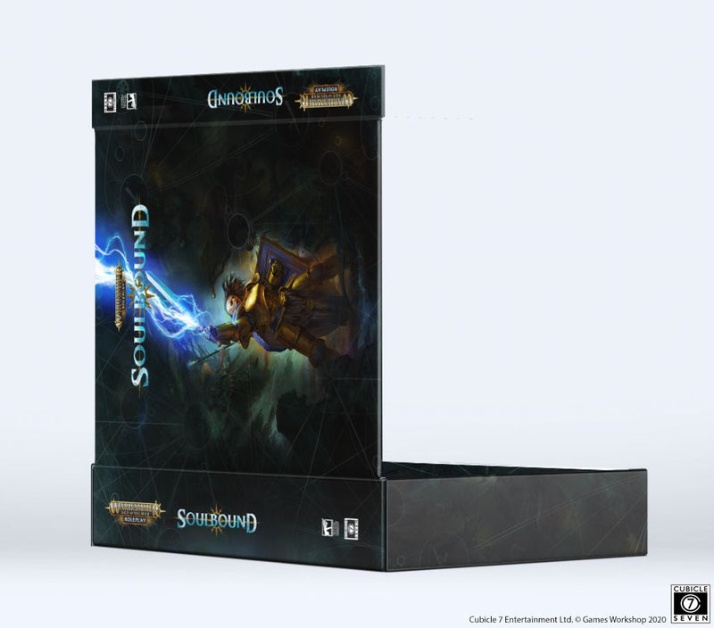 Verpackt in einer stabilen magnetisch verschlossenen Box mit Spot-UV-Details, zeigt die Vorderseite Ritter-Questor Vel Arturious und das Soulbound-Logo, während auf der Rückseite Nagashs grimmiger Blick in leuchtendem Grün erstrahlt.