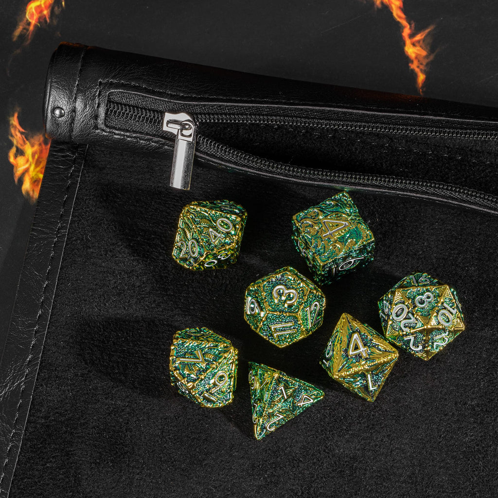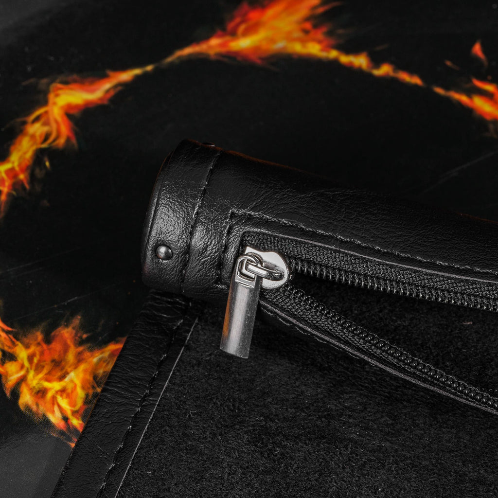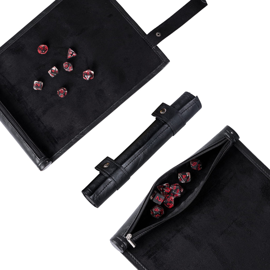 Das tiefschwarze Kunstleder verleiht der Matte einen edlen, geheimnisvollen Look, während der weiche Velour-Filz im Inneren deine Würfel sanft auffängt und störende Geräusche minimiert. Perfekt für präzise Würfe in kritischen Momenten - wenn ein einziger Wurf über Erfolg oder Scheitern entscheidet.