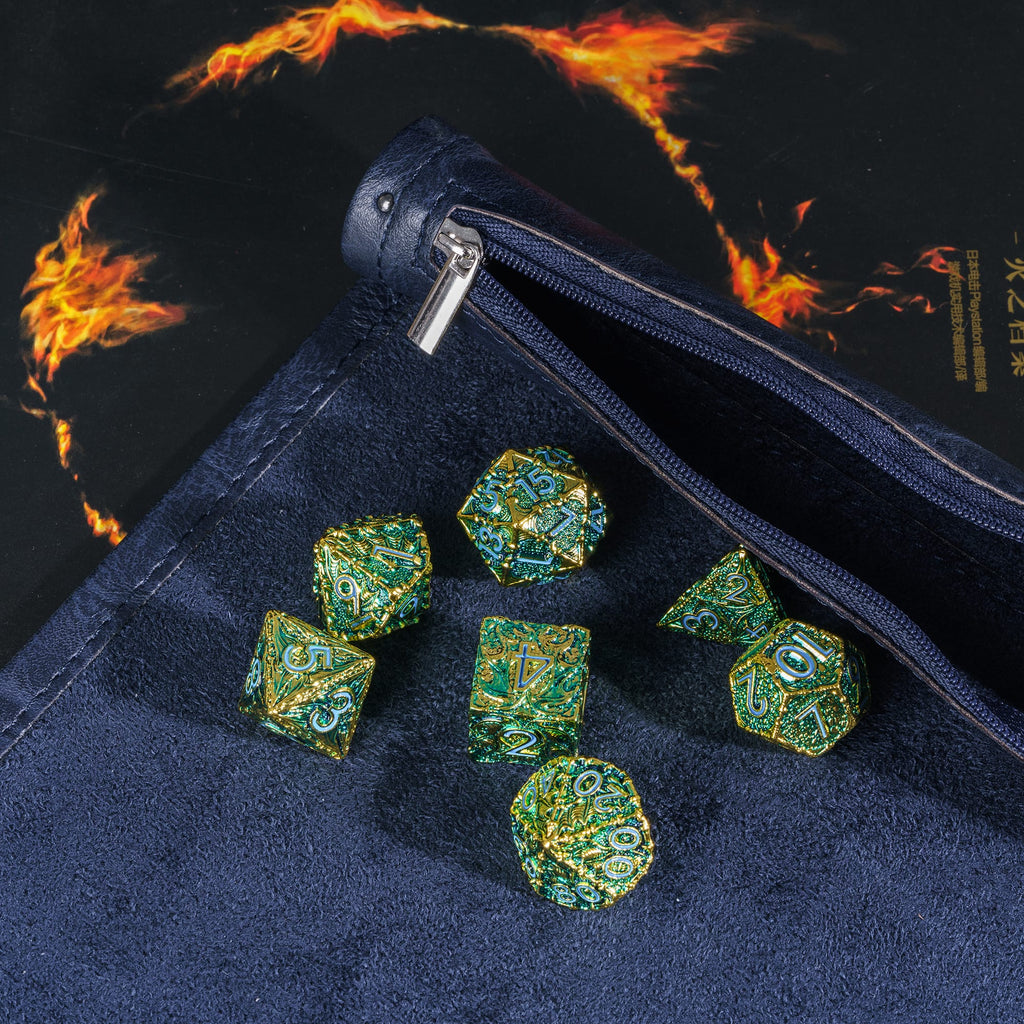 Das tiefblaue Kunstleder erinnert an den Nachthimmel über alten Akademien, während der samtige Velour-Filz im Inneren deine Würfel sanft auffängt und ein ruhiges, kontrolliertes Würfelerlebnis bietet. Kein Klirren, kein Ablenken - nur Fokus und Klarheit.